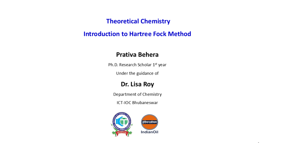 Introduction to Computational Chemistry, Part 1: Hartree Fock Theory